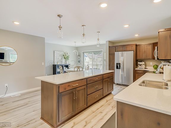 Location! Location! Location! This well-maintained 3 bedroom, 2 3/4 bath townhome is located one block west of Sanford's downtown campus, three blocks north of downtown Fargo, and near NDSU. This three-story townhome is spacious and open, features custom cabinetry, custom blinds, whirlpool appliances, quartz countertops, a 9-foot kitchen island, luxury linoleum, and a gas fireplace. The master bedroom features an en suite bathroom with double sinks and a walk in closet. The oversized two-stall garage is heated with drainage. This property is on a corner lot and includes a small lawn with green space that is all yours for landscaping, gardening, etc. - no HOA fees! Schedule your showing today.