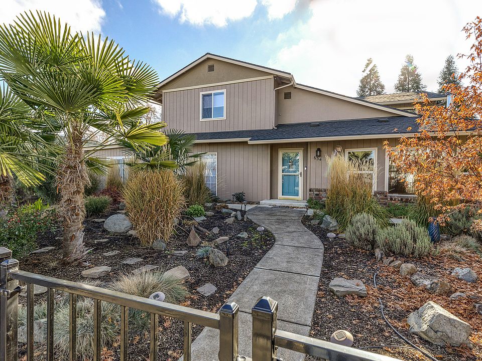 Nicely updated and maintained 2700+ 3 bedroom 2 ba with a detached 648 sq ft 1bd 1ba ADU. Ceiling fans, sky lighting, granite counters, stainless steel appliances and tile floors, plus zoned A/C mini splits and a certified wood burning stove. Covered enclosed patio off of the dining room with access to the front and back yards. Iron / gated fencing, cemented driveway. Landscaped with drip systems for the raised garden beds. Hot tub, gazebo, fire pit and a storage shed. 900 sq ft Primary bed room & bath with walk through closet, sauna and massive walk-in shower w/ tub and a laundry chute. Newer ADU has its own electric meter and garage with insulated room. Tile floors, granite counters, stainless appliances plus 2 zoned mini splits keep the apartment warm and cool as needed. House and ADU can come furnished.