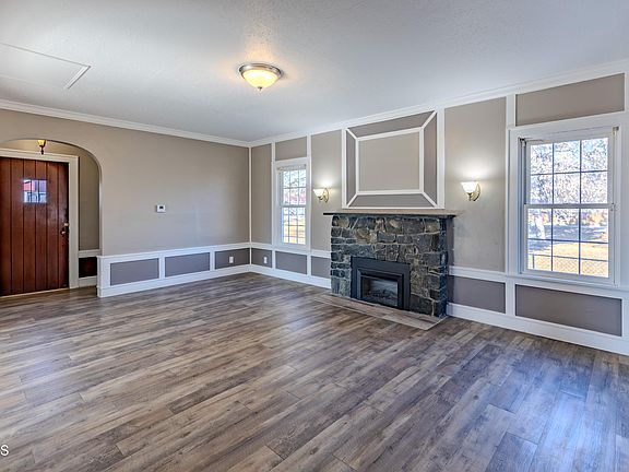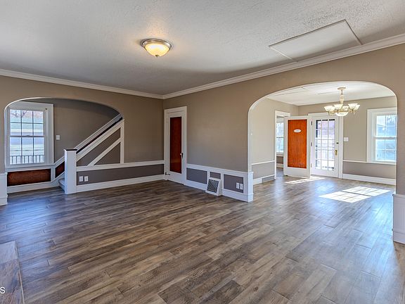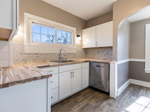 This charming two-story home in Mandan, built in the 1930s, retains some of its original appeal such as the classical glass door knobs while featuring thoughtful updates. The main level offers a spacious living room with a cozy new electric fireplace with stone and tile surrounding, seamlessly flowing into the formal dining area. The kitchen with new cabinets, countertops and updated appliances includes a quaint breakfast nook. Upstairs, you'll find two comfortable bedrooms and a recently renovated full bathroom. The unfinished basement houses the washer and dryer and provides additional storage space. Outside, enjoy three decks and a detached two-stall garage. The very large backyard allows for plenty of greenspace and the possibilities of an additional garage or shop (with city approval). Additional updates to the home include newer windows, siding, fresh interior paint, newer flooring throughout and light fixtures. Conveniently located near grocery, dining, downtown Mandan, and more. Buyer to verify all property information.