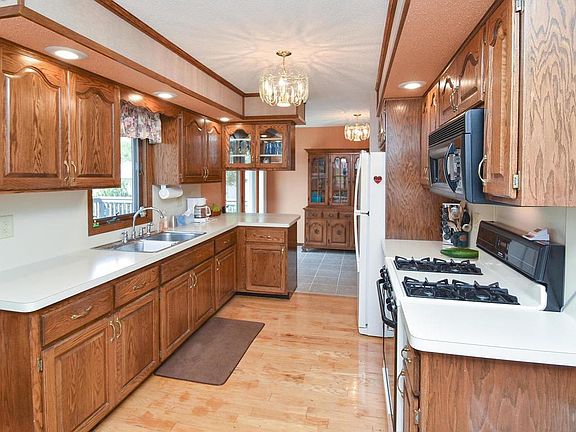 Well maintained Rambler with incredible garage space. Additional lean to (approx 22 x 12) currently used as a shaded patio! Deck overlooks landscaped backyard- steel siding, roof approx 10 years old. Bathroom on both levels- need a 3rd bedroom? Add egress window to den in lower level! Home is close to shopping, hospital / doctors. Walk to bus line., Directions Hwy 10 to Able South, West 84th