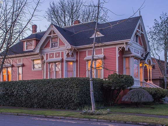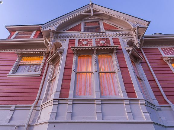 Stunning Historical Beauty on National Register of Historic Places. The Ralston House is an outstanding example of Queen Anne/Eastlake architecture. Two bedrooms upstairs one w/ glass doors looking onto small balcony. Extra Large bathrooms each w/ a claw foot tub. Beautiful woodwork, tall ceilings, elegant light fixtures. Lovely sitting room & parlor either of which could be used as 3rd bedroom and/or office. Basement has great workshop space. Amazing stained glass & original custom detailed woodwork.