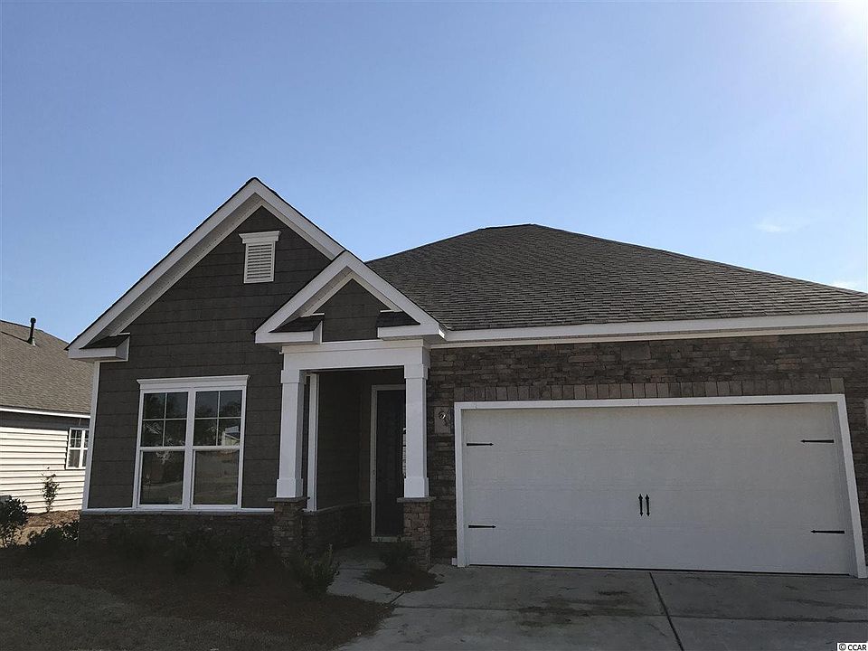 **NATURAL GAS** . This home features a covered porch. Included in the price of the home are the following features: engineered Quick Tie framing tie-down, architectural shingles with 30 year warranty, radiant barrier sheathing, gas fired furnace, 50 gallon gas high efficiency water heater, 7x20 tile hardwood look floorings in all main level living, dining and kitchen areas, tile in bathrooms and laundry areas, Mohawk Stain-Resistant Carpet with 6lb pad in bedrooms, Designer Maxim lighting package, drywall paint-ready finish garage, crown molding in main living areas, master bedroom and tray ceilings, 3 1/4" colonial cased windows and doors, 5 1/4" base boards throughout home, pre-wired for ceiling fans in living room, all bedrooms, ventilated shelving in closets and pantry, smooth ceilings, Legacy 36" staggered painted (off white) maple cabinets with molding and hardware, granite countertop in kitchen and bathrooms, tile backsplash, pendant light pre-wire over kitchen island, double bowl stainless steel sink in kitchen, stainless steel Frigidaire appliances (range, dishwasher, and microwave above range), 1/2 HP garbage disposal, icemaker hookup, 3 phone lines, 5 cable outlets, dual vanities in master bath, raised vanities in all baths, plate glass mirrors above vanities in bathrooms, Moen oil rubbed bronze faucets, water saver elongated toilets, exhaust fans in all baths, and two exterior carriage lights at garage. Golf cart ride to the beach and access to 6th Ave South from neighborhood. Note: Pictures shown are not of actual home being built they are of the model home, these are used for only illustrative purposes to show what the home layout will look like. Measurements and sq ft. are estimated and not guaranteed and should be measured by buyer once home is completed.
