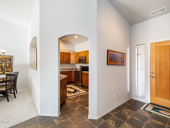 Situated on the 9th hole of the golf course, this 2-bedroom, 2-bathroom home in Highland Meadows offers a rare blend of prime location and peaceful living. Vaulted ceilings and a striking stone fireplace anchor the open floor plan, creating an inviting atmosphere perfect for gatherings. The kitchen is complemented with dark wood cabinets, while the seamless transition to the landscaped backyard enhances your entertaining space. Set in a quiet, low-traffic area, this well-cared-for home also features AC and a newer roof, making it move-in ready for those seeking comfort and convenience.