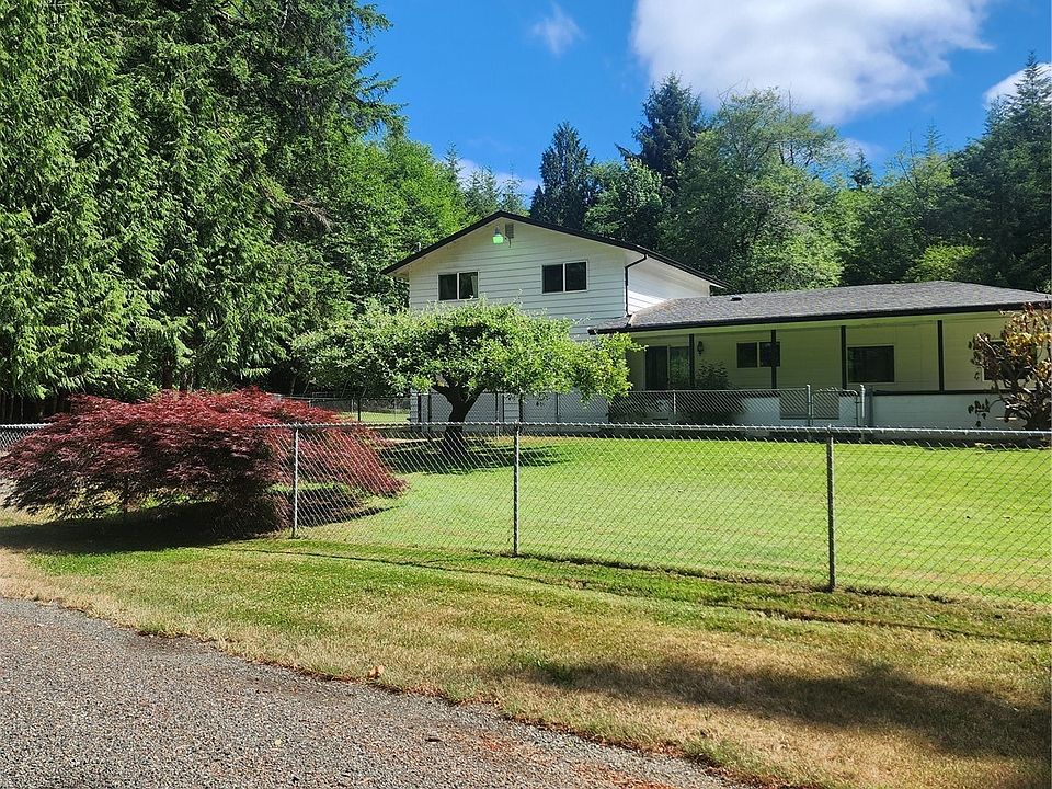 Want Country Living. Here it is. 3.31 +/- acres with large fenced in yard, a meandering spring fed creek, fruit trees, mature landscaping and Old fashioned covered front porch. Home features 4 bedrooms, 2 1/4 baths with one off of primary, spacious living room featuring custom river rock hearth with free standing stove with slider to deck. Large kitchen with eating area. Heat pump, utility room with water filtration system, new carpet & interior paint. Out building with power/insulation/drywall. Garage with additional 220 power. Close to Elma & 1/2 hour to Olympia.