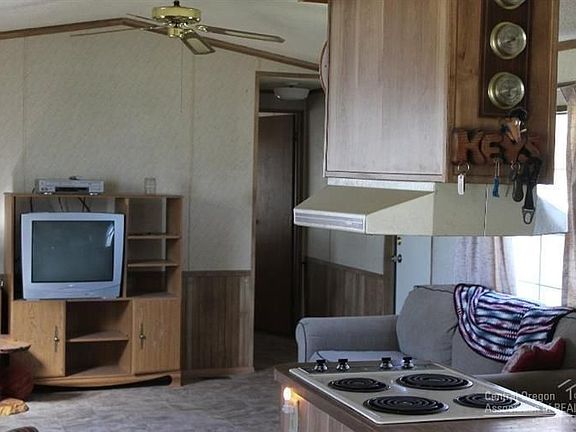 Affordable housing. This home offers a great room floor plan with a bed & bath at opposite ends of the home. Newer vinyl flooring throughout. There is a wheel chair ramp to the back door, large covered parking, room for RV parking plus room for a shop. Lots of potential here. Situated on a large .34 acre lot, 2 storage buildings & fenced back yard too!