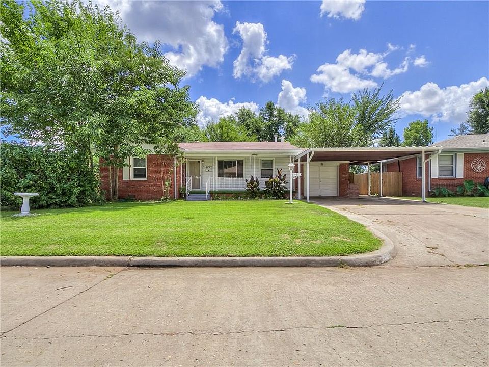 Opportunity awaits in this Midwest City Gem! HIGH STYLE Renovation with a Modern Twist. Filled with natural light and refinished hardwoods throughout most of the residence. Additional 300 sq ft sunroom not included in the square footage (with heat and air) AND a covered patio. Endless possibilities for this space. Garage was converted to a 3rd bedroom, but there is still an oversized carport. Mature landscape, and a deck that is set up perfectly for a pool. NEW hvac, tile, accents in kitchen, and oversized stainless fridge. Additionally NEW PAINT, and CEDAR FENCE. Many forward thinking features on interior including statement wood beams, and accent walls. Urban Ideal. See TODAY! SELLING AS IS! great for a rental BRRR!