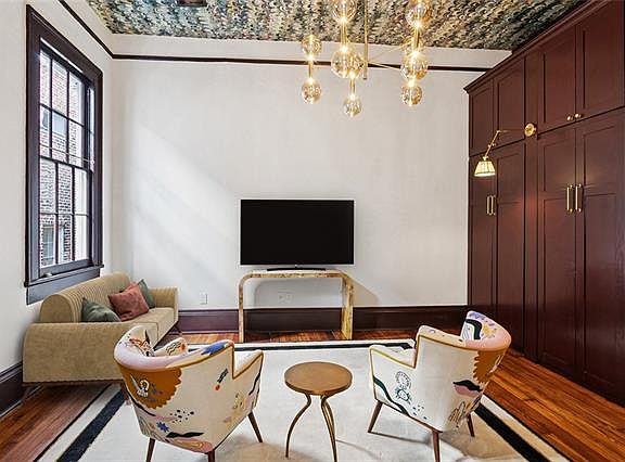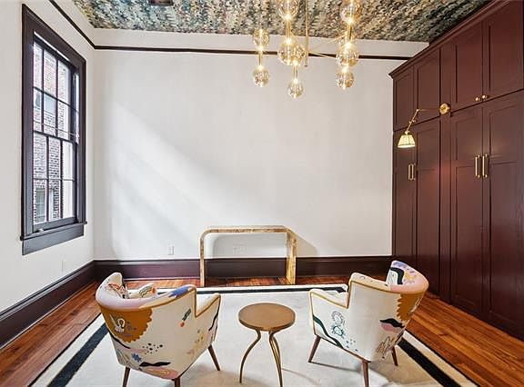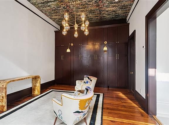 Ample storageCustom range hoodMarble countertopsHardwood floorsIntricate moldings