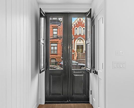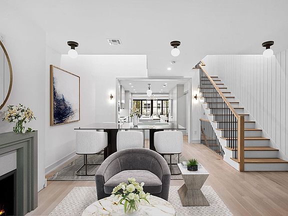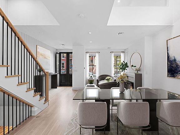 Presenting 632 Garden Street, an extraordinary completely renovated townhouse ideally situated on one of Hoboken's most desirable tree-lined streets. This custom-built single-family home occupies a generous 18 x 100 lot and offers approximately 3,500 square feet of meticulously designed living space. Upon entering the parlor level, you'll be greeted by an abundance of natural light streaming down through 3 expansive rooftop skylights. Unique dual floor breezeways are also illuminated and create an inviting and open atmosphere throughout the home. This main living floor features a custom built-in gas fireplace, a top-of-the-line designer kitchen with high-end WOLF appliances, a discreet hidden pantry, a private powder room and a stylish family room with direct access to the deck and yard. The meticulously landscaped yard is accented by custom Ipe mahogany planters and maintenance free permeable turf grass, providing a tranquil outdoor space for relaxation and entertainment. Upstairs, the primary bedroom boasts a beautifully renovated en-suite bath with radiant heat floors, soaking tub, a spacious walk-in closet, and floor-to-ceiling Marvin windows, creating the perfect serene environment for a private retreat. The garden level spans the entire footprint of the house, offering ample living space and storage. Smart home features, including a multi-room audio system and surveillance systems, ensure modern convenience and peace of mind. The property also includes a two-zone HVAC system and two large water retention dry wells in the backyard for efficient and sustainable living. Conveniently located near shopping, dining, NYC transportation, and the scenic Hudson River waterfront promenade, this residence offers the perfect blend of urban accessibility and suburban tranquility, with breathtaking views of the iconic NYC skyline.
