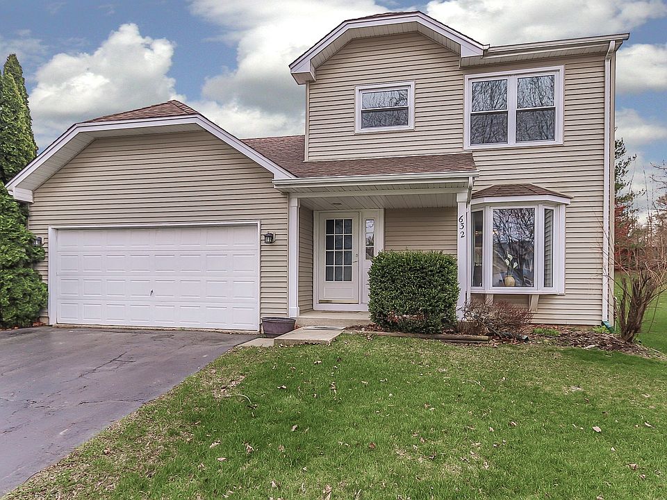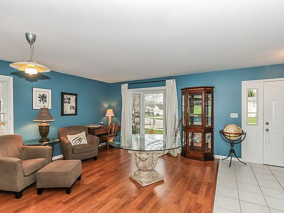 Hurry! One of the largest lots in the subdivision! All the work has been done! Covered front porch! Tile entry! Spacious living room with added custom bay/picture window and rich hardwood flooring opens to the bright eat-in kitchen with breakfast bar, tile flooring, some stainless steel appliances, lots of cabinet space, pantry and sliding glass doors to the concrete patio with custom awning! Family room with cozy stone fireplace and tile flooring! Spacious master bedroom with oversized closet and private bath! Gracious size secondary bedrooms! Beautiful finished basement with large rec room with recessed lighting and wired for surround sound! Neutral throughout! Newer windows, siding, roof, furnace and water heater! Extra insulation! Shed! Close to I-90 access, shopping & transportation! Great condition!
