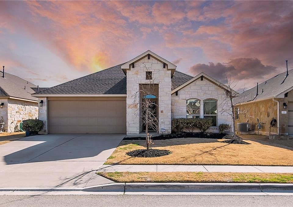Home is conveniently located just minutes from US-Hwy 183, close to HEB, restaurants, shopping, and more! Three bedrooms are situated in the front of the home and share a full bathroom. The kitchen features granite countertops, a gas stove, a walk-in pantry, and plenty of cabinet space. The open floorplan connects the kitchen, dining room, and living room. The spacious backyard with automatic sprinklers backs up to green space, providing ultimate privacy. Access to the community swimming pool. Excellent school district. Minutes walk to Leander station!