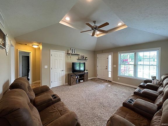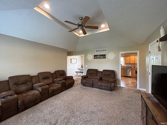 Welcome to this stunning and spacious 3-bedroom, 3-bathroom home located in the charming town of Ferdinand, Indiana. This beautiful residence offers the potential for a 4th bedroom, and is the perfect place for comfortable living and entertaining. With its ideal location, exceptional features, and its well maintained condition, this property presents an unparalleled opportunity for those seeking a relaxing and comfortable family lifestyle. When you enter this custom built home, you are greeted with a cathedral ceiling in the spacious living room. Then head into the kitchen and dining area that is plentiful of storage. The tray ceiling master suite features a private full bathroom with his/hers sink and a large walk-in closet. The additional bedrooms offer generous closet space for your growing family. The second bathroom has been updated with new fixtures. As you head downstairs, you will notice the custom fabricated hand railing. The movie theater room in the basement is perfect for movie nights and family entertainment. Enjoy the custom wet bar in the basement, ideal for hosting gatherings and parties. The attached 2-car garage boasts convenient parking and extra storage space. A lush lawn and maintained landscaping will have you enjoying the outside of this home as well. The back porch area is perfect for grilling out on a summer evening. Recent updates include: rebuilt treated deck in spring 2019, new garage door & motor in 2021, new ice maker October 2021, upstairs carpet professionally cleaned in February 2023, and new dishwasher with 1-year warranty in May 2023.