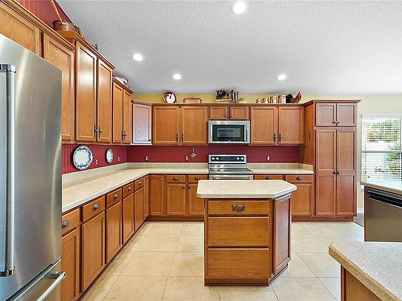 HACIENDAS OF MISSION HILLS 1715 SF WYNDHAM 3/2 COURTYARD VILLA with a 2 CAR GARAGE! Located close to LAKE SUMTER LANDING this location offers all the conveniences The Villages has to offer! The home features lovely decorator colors, Tile and Laminate Throughout. The open kitchen has Stacked Cabinets, a center island with storage and laminate counters. STAINLESS appliances include a smooth-top range, French Door refrigerator, dishwasher and a space saver microwave. A large breakfast bar, a center island, a pantry, tile flooring are additional features. The OPEN dining and living rooms feature VAULTED CEILINGS. The courtyard also features a concrete patio and low maintenance landscaping. The master bedroom has Laminate Flooring, a TRAY ceiling and its own en suite bathroom with dual-sink vanity, tile surround shower and TILE flooring. There are two comfortable guest bedrooms and a guest bathroom featuring tile flooring, and a shower/tub combo. The Screened LANAI has plenty of room to enjoy yourprivatecourtyard. There are numerous upgrades throughout this lovely home. Close to Haciendas of Mission Hills Neighborhood Recreation Center and Pool, Lake Sumter Landing, Palmer Legends Country Club and Golf Course and Live Oaks Park. PLEASE WATCH OUR VIDEO OF THIS EXCLUSIVE PROPERTY.