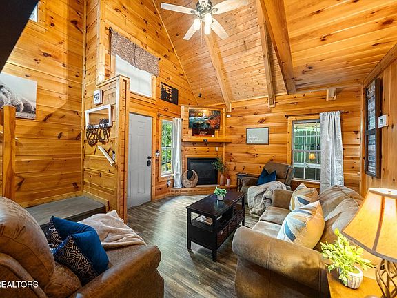 FANTASTIC SHORT TERM RENTAL WITH $72,108 in RENTAL INCOME FOR 2024 AND ON TRACK TO DO SAME OR BETTER IN 2025. This turnkey, well-performing cabin offers established rental history in a prime location—right in the heart of Gatlinburg's Historic Arts & Crafts Community. Guests love the convenience: it's less than 0.4 miles to local shops, with no steep or winding mountain roads to navigate. Downtown Gatlinburg is under 10 minutes away, Rocky Top Sports World is approximately 2 miles away, and the main entrance to the Great Smoky Mountains National Park is just 5 miles from the cabin. This property is a wonderful blend of modern updates and rustic charm. The living room is open to the dining area and a well-equipped kitchen, with easy access to a covered patio. The main floor features a spacious king-size bedroom, and a second bedroom is located upstairs. Outside, you'll love the private back patio, which includes comfortable outdoor seating, a bubbling hot tub, and a grill—an ideal space to relax and enjoy the mountain air. The cabin is truly turnkey, with many recent improvements: new flooring, painted kitchen cabinets, remodeled bathroom (2022), washer and dryer added, new HVAC (2021), water heater (2022), new metal roof (2023), a roof was also added over the patio for extra outdoor enjoyment. The HOA fee includes city water, sewer, road maintenance, trash service, and upkeep of common areas. The property is on public utilities and offers several alternate routes to both Pigeon Forge and Sevierville.