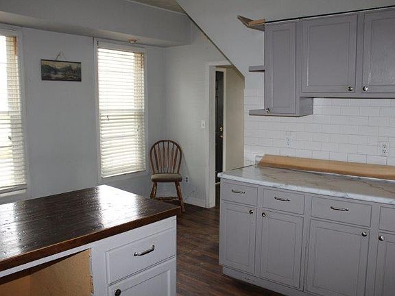 Many updates have been made, or are underway, on this roomy 3-bedroom home. On the first level the bright kitchen leads to a dining area and through to the living room that features French doors. A new bathtub/shower and vanity have been installed in the large bathroom and there is an area for the washer & dryer. Upstairs are three bedrooms with new flooring. One bedroom includes upper porch access. Many mechanicals have been updated including new sewer lines, new water heater and newer furnace and A/C. Many newer windows as well. The home sits on a lot with no nearby neighbors, park-like views, and access to the bike path to town. Home is being sold as-is.