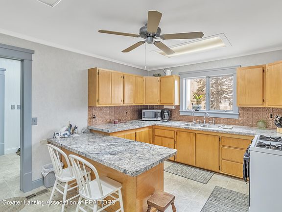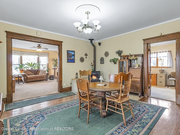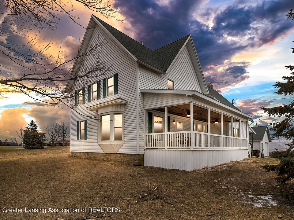 This beautiful Farm Home built in 1920 has all of the charm from its era, but updated to feel like new. On a paved road, in the country. With 5 bedrooms and a Library that could easily become a bedroom if needed. First Floor Laundry, updated kitchen, huge dining room and living room. Open Oak Staircase and so much more. Sitting on over 2 acres with a heated garage/work shop! Upstairs has 4 bedrooms and a very spacious attic that you can also access with a second staircase that will lead you to the large open attic then one more set of stairs going to a third floor bonus room. This home has been well taken care of and is a must see. This home is occupied, please give at least a couple hours notice to tour. Reserved items: Freezer; Propane tank; Surround sound speakers in living & dinning.