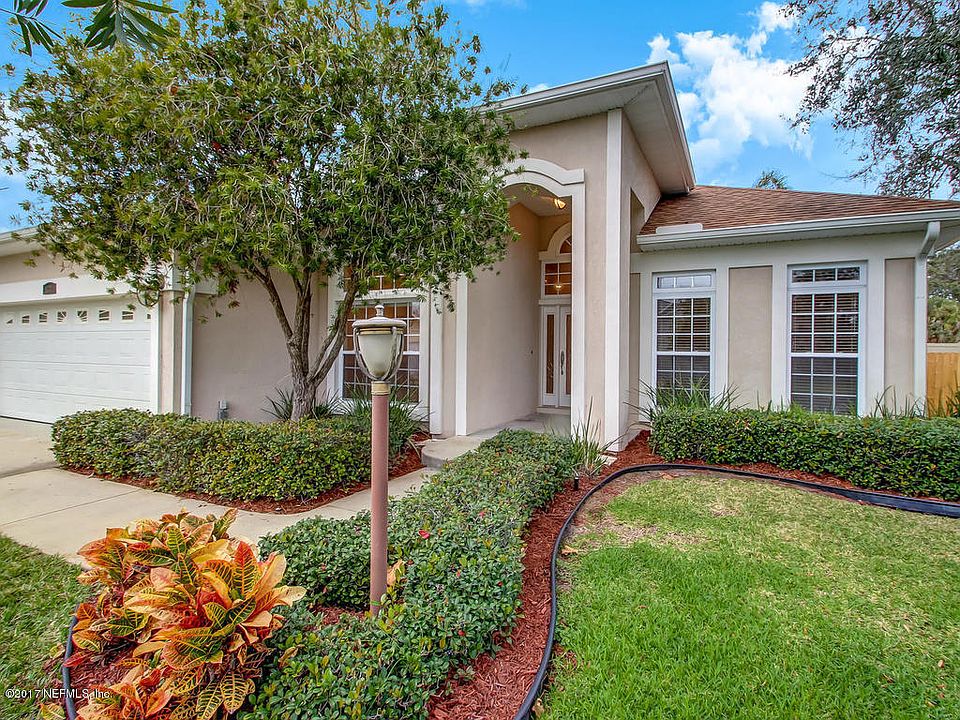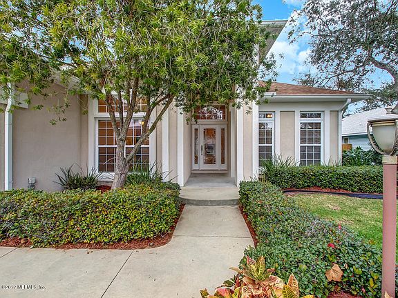 If beach living is what you desire, this is the home for you. This beautiful concrete block home is 1 mile from St Augustine Beach in the quaint neighborhood of Commodores Club. As you enter through the glass front door you will notice diagonal tile throughout the main living areas, two step crown molding, 5 inch base boards and rounded corners that makes this home even more alluring. There is a separate dining room, 2 bedrooms and a 3rd room that can be used as an office/flex room. The open floor plan includes a large Family Room with a fireplace that is open to the Kitchen and screened lanai for entertaining family and friends. The master bedroom also has its own entrance to the screened lanai. The master bath has a large walk in shower with 2 shower heads and a wonderful soaking tub.