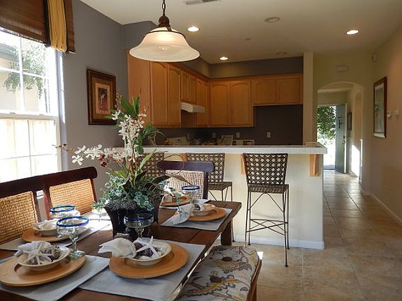 Open the front door to bright, sunny high end finishes with tile flooring & beautiful touches throughout. Two story model tile entry leads to friendly kitchen, nook & living area, gas log fireplace and boasts two bedrooms, guest bath, interior laundry room downstairs. The upstairs is a secluded master bedroom & en-suite bath, a huge walk in closet and tiled bath with private balcony.