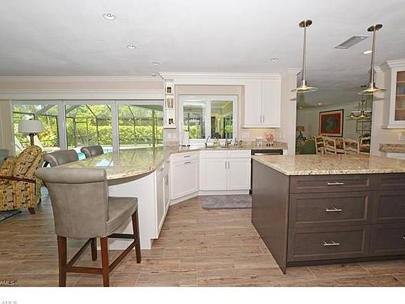 Location,Location,Location. This beautifully renovated Florida ranch house is ideally located distant from US41, just off Crayton Rd a few blocks to the beach, and the shops and fine dining of Venetian Village. Surrounded by lush tropical landscaping, the 4 bedroom 3 bathroom home has high impact, hurricane proof windows and sliders with an updated kitchen that features gorgeous up-to-the ceiling cabinets incorporating a wine rack, double crown molding, granite counter tops, an island with drawers and hanging lights, stainless steel appliances, breakfast bar, pantry. The distinctive, recently installed, wood grain tile floor adds a touch of the '"wow" factor. All three bathrooms are renovated with granite counter tops, new faucets. The large utility room with a sink has plenty of storage. The living room carpet will be replaced with the wood grain tile on receipt of an acceptable offer. Garage with work tops, cupboards, drawers, sink and a hurricane proof door. Enjoy the surroundings on the lanai, cool off in the pool. Membership of the Parkshore Beach Association is available with beach access, parking and bathrooms. No need to look any further, this truly is Paradise Found