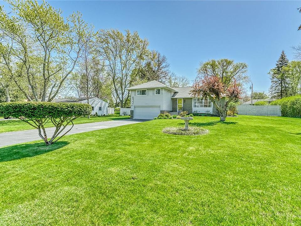Beautifully updated mid-century split level on an expansive private lot encompassing almost half an acre. Architectural shingle roof installed 2020. Three large bedrooms and 2 full bathrooms on the upper level. Lower level has fabulous view of manicured backyard with separate access to the patio and is currently being used as a family room, but could function as a fourth bedroom. Lower level also has a half bath. Large sun-filled living room with wood burning fireplace, formal dining room and eat-in kitchen, with access to deck from the kitchen for indoor/outdoor entertaining. Partially finished basement. Brand new shed. Two car garage has a hoist and a separate electrical panel. Delayed showings begin Thursday, May 19 at 9 am. Delayed negotiations on Monday, May 23 at 5 pm.