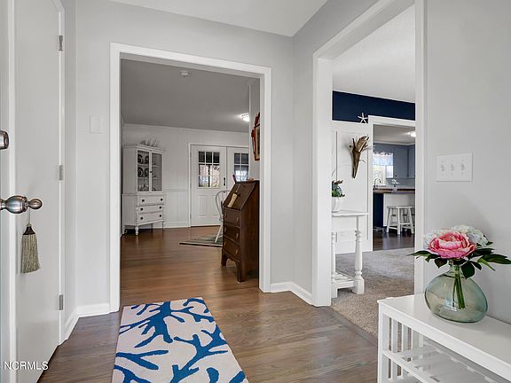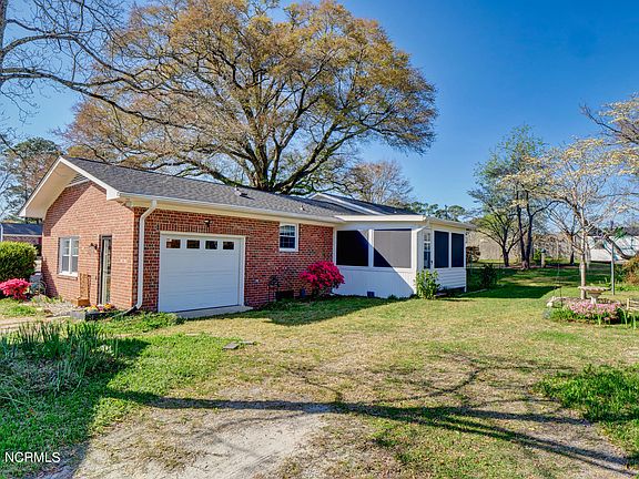 Welcome to this beautifully updated 3 bedroom, 2 full bath, brick ranch, nestled in a peaceful neighborhood, perched on a high, oversized, corner lot, and surrounded by vibrant colors of blooming azalea bushes. This charming home boasts a perfect blend of modern amenities and classic charm, with a touch of natural beauty. As you step inside, you're greeted by an inviting living space featuring hardwood floors and ample natural light streaming through large windows. The recently renovated kitchen is equipped with custom cabinets, desirable island, and a pantry with enough space for every type of Little Debbie snack. The open layout seamlessly connects the kitchen to the dining area, living room, and even the enclosed sunroom making it ideal for entertaining guests, and enjoying family meals. The prime location allows multiple routes to navigate your drive to and from home, the grocery store, downtown Wilmington, and even Wrightsville Beach. This meticulous maintained home offers a little something for everyone, great outdoor space, NO HOA, open floor plan, she shed, fully enclosed sunroom, and one of the biggest oak trees in the area.