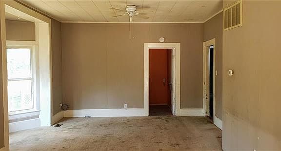Explore the possibilities with this 1.5 story home on large corner, Large fenced backyard. Full front porch. Carport/shed combo in back. Needs some TLC.