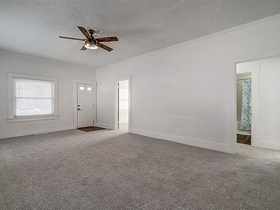 This Cute Bungalow home is move in ready! NEW FLOORING in Living and in the front 2 bedrooms! There is new vinyl flooring recently installed in the bathroom. This bungalow home has 3 good sized bedrooms with ample closets and updated fans and fixtures. In the hallway you'll find a shared bathroom with tub/shower combo. Plenty of cabinet space, & counter top space. Walking into the home, you enter the giant Living Room! It has a lot of natural light from the big windows. There is a separate dining room, a laundry room, and great kitchen space! The kitchen has dishwasher, stove and windows & tall ceilings that make the space feel bigger! There is a detached 2 car garage in back with a storage built on. The cellar is accessed from the backyard. The backyard has plenty of room for playing, entertaining, and your hobbies! The backyard is fully fenced with privacy fence and chain link through gates. You are just a few blocks from parks, shopping, and all the amenities! Come check it out!!