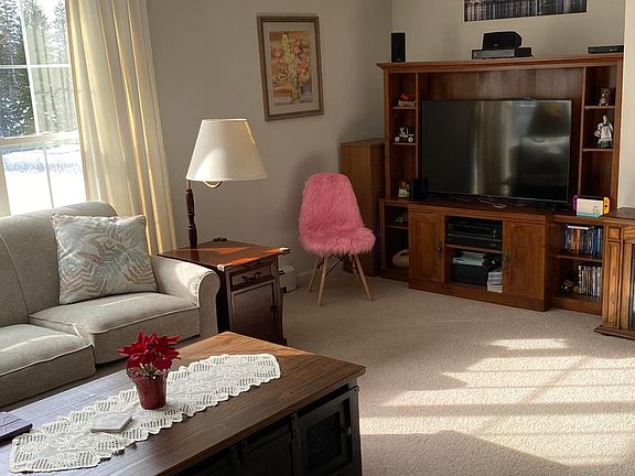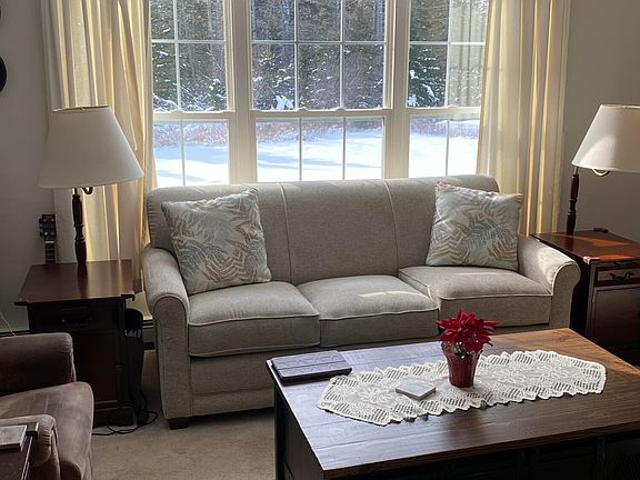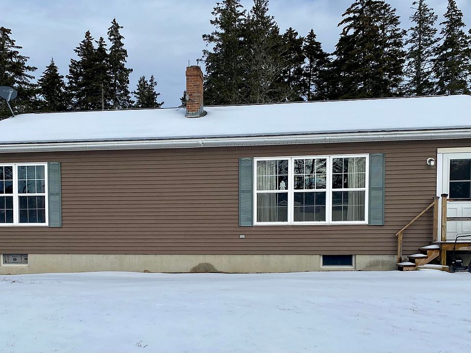 This year-round cozy ranch is situated in the woods which provides total privacy. The house is a modular home built in 1999. An open floor plan containing the kitchen, dining area and living room make it easy for family life and entertaining. A half bath and laundry room are situated to the right of the kitchen. Two bedrooms and a large bathroom are located at the end of the house. The foundation is poured concrete with 10 foot walls. The basement is large and dry with a bonus room. A lot of space for storage.