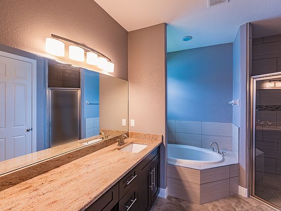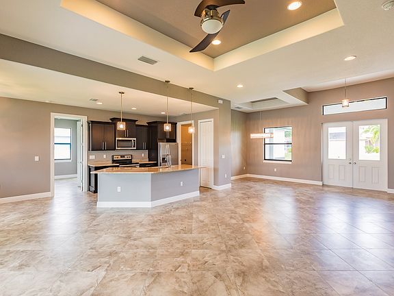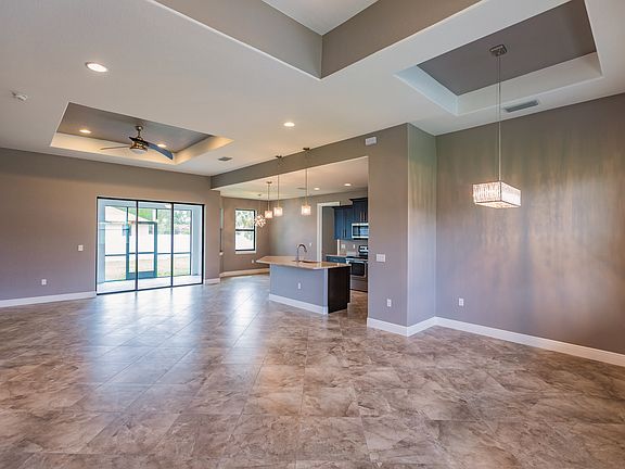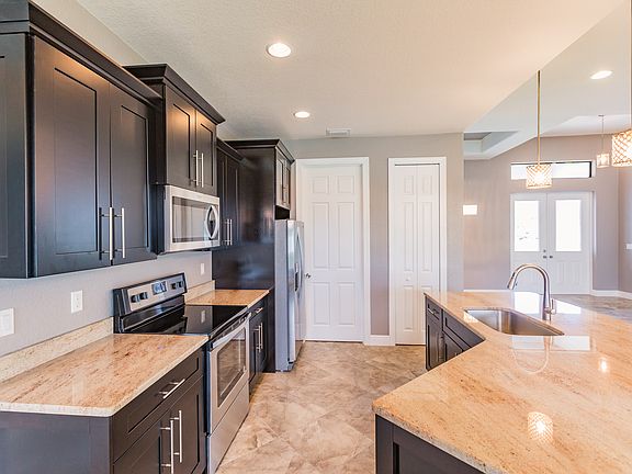 Beautiful Contemporary New Construction Home, Lived in for 6 months, Move in Ready! Great Curb Appeal, Entire home is 18" Porcelain Tile set on a diagonal. Huge Island in kitchen with Upgraded Granite, Stainless Steel Appliances, Upgraded Lighting package, Window Treatments, Floor to ceiling tile in Master Shower, Soaking Tub, High Tray Ceiling, 8 ft. Doors, Extra Large slider that opens completely to lanai, Oversize corner lot, 6 ft. Privacy Fence, Screened Lanai with doggie door, Two car garage, Outdoor Lighting, Paver driveway, Upgraded Landscaping, Double Glazed windows, Gutters, 4 Zone Sprinkler System, Warranty. Fantastic Quiet Street close to everything. This is a must see home, you won't find another new construction home of this quality for under 300K.