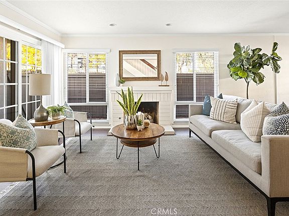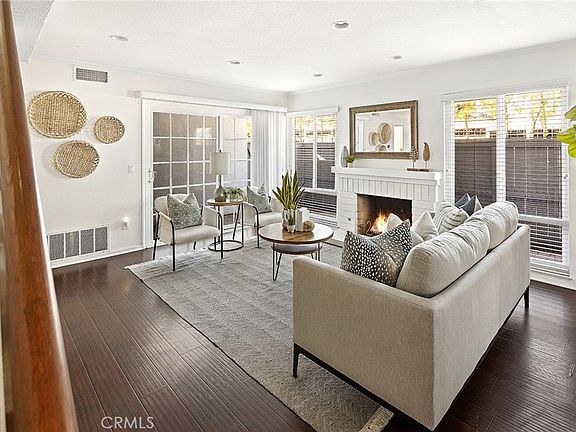 Beautifully Upgraded 3 bedroom 2.5 bathroom End Unit Townhome in the Brookview community. The kitchen has been remodeled with wood cabinetry, soft-close drawers, granite counters, porcelain tile floor, and recessed lighting. The living room features a brick wood and gas-burning fireplace, laminate flooring, high ceilings, and recessed lighting. Off the living is the dining room which leads out to a wrap-around patio. The master bedroom is oversized, and features built-ins, a remodeled bathroom with wood cabinetry, granite counters, and an oversized shower. Two good-sized secondary bedrooms upstairs share a hall bathroom that was completely remodeled, featuring a newer vanity, bathtub and shower tile, granite countertop, and tiled floors. The attached two-car garage is oversized and features a workbench and storage closet. The windows and sliding doors have been replaced throughout. There is a separate laundry area inside with a washer and dryer included, and the refrigerator is also included as well! Conveniently located close to South Coast Plaza, Performing Arts Center, Theaters, Restaurants, and Freeways. The Brookview Complex offers a Tennis Court and two Pools.