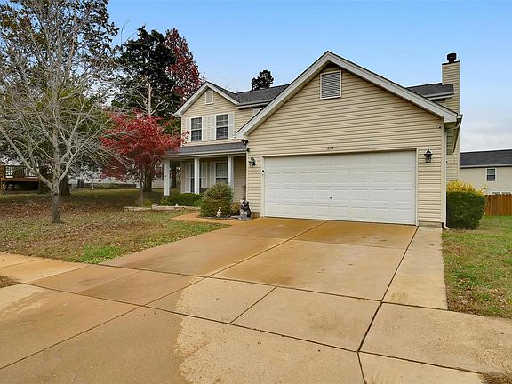 Spacious 2-sty located on a quiet corner lot at the end of a cul-de-sac! Curb appeal is boosted w/extended driveway, covered front porch & Architectual shingled roof. Walk inside to neutral carpets & colors w/approx. 1900 square feet of living space above grade. Entry foyer is flanked by a living room /dining room combo. Eat in kitchen includes white cabinets, SS appliances, dual oven w/electric cooktop, breakfast bar & plenty of cabinet space. Breakfast room adjacent. Family room is spacious & features a woodburning FP w/marble surround. Upstairs is a large MB suite w/updated master bath & walk in closet, 3 add. BR's share a 2nd full bath. LL is ready for finishing. Out back you'll find a large, flat & fenced in yard w/a concrete patio. RSD, walking distance to a fully stocked fishing pond, restaurants & retail.
