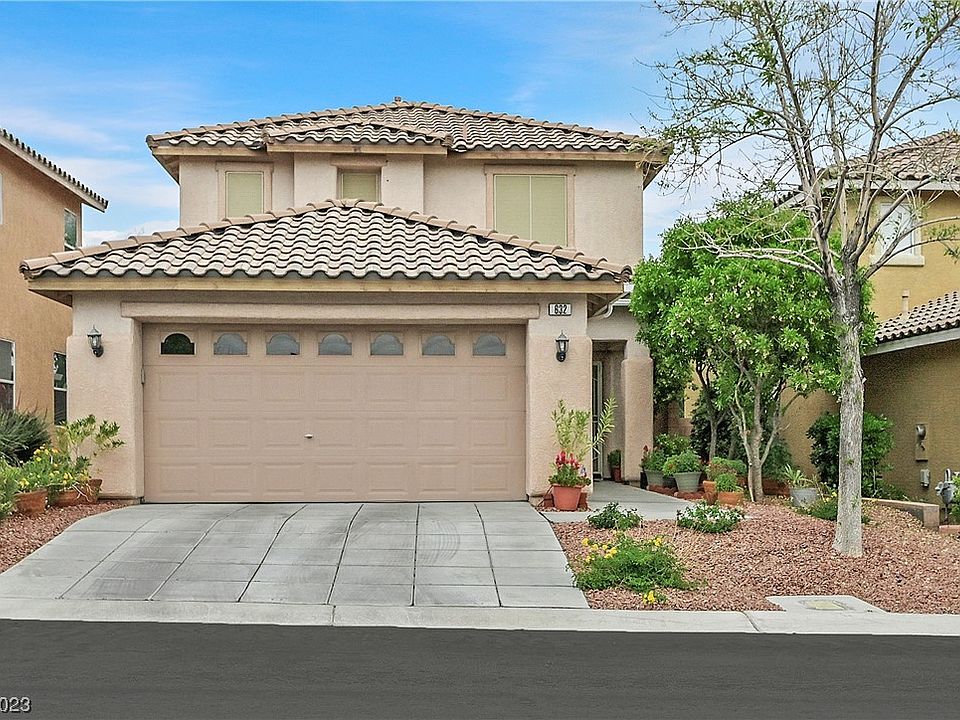 Welcome home! This beautiful home is located in the heart of Summerlin and close to freeway access, stores, schools, gyms, medical, parks - anything you need is nearby*Inviting entry leads you into this wide-open floorplan with plenty of living space*spacious living and dining areas*family room with a cozy fireplace for cool winter nights*bright kitchen with solid countertops, white cabinets, newer stainless appliances and a pantry*good sized primary bedroom has surround sound, a large walk-in closet and tub and shower combo in the bath*2 additional bedrooms - one has mountain views*upstairs laundry room - all appliances stay*refreshed desert landscape front and back*lounge on the covered patio and enjoy the privacy with no neighbors behind*No Carpet in the house - tile in the kitchen and family room and new solid flooring thruout the remainder of the house*2 car garage is finished w/epoxy floors*HVAC and water heater are newer*freshly painted*solar screens*this home is move-in ready!