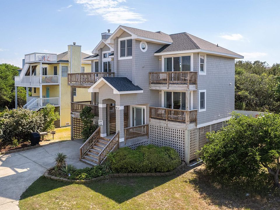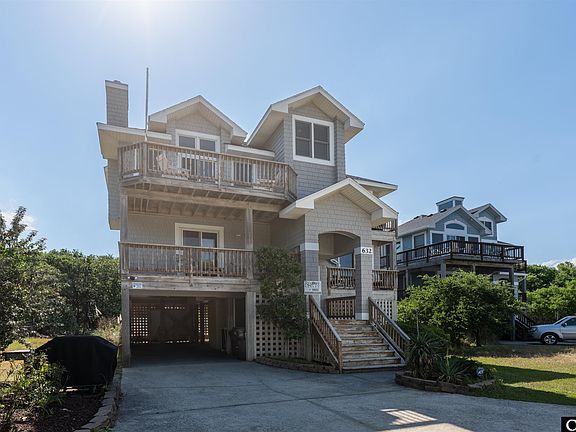 Introducing "Highlanders Haven," your Outer Banks retreat nestled within the Ocean Sands community of Corolla on the oceanside! This charming 4-bedroom, 3.5-bath home, tucked away on a peaceful cul-de-sac at 632 Skimmer Ct, offers the perfect blend of coastal comfort and vacation indulgence, all just a leisurely stroll from the beach. Ascend to the third level where you're greeted by a sun-filled, open-concept living space. Hints of gorgeous coastal elegance and thoughtfully updated furnishings throughout create an inviting ambiance. The kitchen is well stocked with ample storage and pantry space. The ships watch awaits, offering a dedicated office space and comfortable sitting area. Step effortlessly from the dining room onto your screened porch, a haven for al fresco dining and enjoying the coastal breeze. Your private en suite on this level is a light and airy sanctuary, complete with its own private deck, generous closet space, and a convenient owner's closet. Journey to the second level and discover a 1/2 bath as you descend to the living area adorned with tasteful coastal accents. An en suite bedroom on this level offers a private retreat with coastal charm and a private deck. The duo bunk bedroom provides flexible sleeping arrangements with a pullout bed underneath and the added bonus of private deck access. On this floor you will also find a full bath, as well as, the queen bedroom offering direct access to the deck leading to the hot tub and convenient steps down to the private pool. Outside, "Highlanders Haven" boasts exceptional amenities. A spacious carport offers convenient parking, along with outdoor storage for beach essentials. Enjoy outdoor cooking with both a gas and charcoal grill, and rinse off the sand in the refreshing outdoor shower. The centerpiece is the inviting private pool, set within a private backyard oasis. The ground level laundry is conveniently situated to wash towels and suits after a fun-filled day on the beach and time spent by the pool. Experience a "like new" feel throughout this updated home with new LVT flooring, stainless steel kitchen appliances, furnishings & decor! The thoughtful layout and abundance of amenities are simply perfect for creating lasting vacation memories. Located within the centrally located Ocean Sands Community, "Highlanders Haven" offers easy access to the best of Corolla, including local shopping, delightful dining, and fascinating historical landmarks just a short walk, bike or drive away. Take advantage of this second home or investment opportunity today!