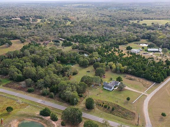 Quiet & peaceful with nature all around at this beautiful 6.7 acre property. Home has 4 bedrooms & 2.5 baths with all laminate and tile flooring. Kitchen is open to family room with brick fireplace & a separate study just off the kitchen. The formal living is at the front of the home and could be a game room or another family room. A sunroom was added recently at the back of the home. This room is surrounded by windows for great views of the back of the property. It\'s a wonderful area to relax and watch the wildlife in your own yard! There\'s a large storage shed on the property plus a chicken coop & XL propane tnk. Further back is a larger pond stocked with fish for more enjoyment right at home. Large corner lot has a portion left uncleared along the road for privacy & easy care & there are large trees along the back of the property. The community is close to lovely downtown Bellville and only an hour from downtown Houston. Fix up this home with minor updates and make it your own!