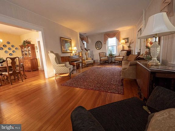 WELCOME HOME! This lovely home located on one of historic Riverton's finest streets has been meticulously maintained by the same family for several decades and exudes all the wonderful Charm of Riverton. In addition to 4 good size bedrooms, 1.5 baths and a TWO CAR GARAGE, this home's additional features include a gas FIREPLACE in the living room, gorgeous HARDWOOD floors, original woodwork,original interior doors with original hardware, replacement windows, Central air on the second floor (approx 5 yrs) and New window unit on the first floor,a finished basement, 1st FLOOR LAUNDRY, nice kitchen, a large 3 season SUN ROOM off the back and a heated enclosed front porch. Just add heat and you have wonderful family room to use all year long. All this and within walking distance to shops, school, Riverton Park, the scenic River and the light rail Train.