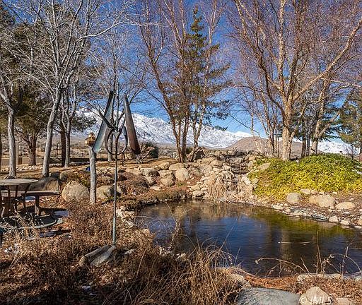 Don't miss this well-appointed home in the exclusive Alabama Hills with everything you could ever want plus comforts you hadn't even thought of! Gated entry with lighted wrought iron fence opens to a cement driveway with extra parking. This 3.9-acre property has been lovingly landscaped and cared for by the original owners to include a fenced garden area, Koi-pond, lighted walkways, new TimberTech deck and fire pit. Large workshop/garage is partially insulated with a 3/4 bathroom plus a metal RV shade and solar panels. Natural light floods the gorgeous interior of the home. Expansive wood wrapped windows along the entire perimeter and a stunning Clerestory. Worth noting are the 10-foot ceilings, vaulted cedar ceilings and beams. Plenty of interior storage including six large closets with floor to ceiling doors. The open kitchen has a 13 ft. island, cherry cabinets, with an accessory wet bar and built in buffet. This Craftsman style beauty offers understated luxury throughout, in the highly sought after Alabama Hills. So worth considering as your dream home!