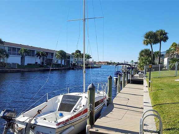Lovingly maintained and moderately updated 2 bedroom / 2 bath condo, steps from the heated pool and your boat *** dock space available for up to a 26' boat for free *** no bridges to obstruct your short ride out to open waters *** super centrally located: a short walk to Four Fredoms Park, stores and restaurants *** low, monthkly condo fees cover your water, sewer, cable and trash removal fees - all you pay is electric and internet *** come check out this easy to show condo before it's too late