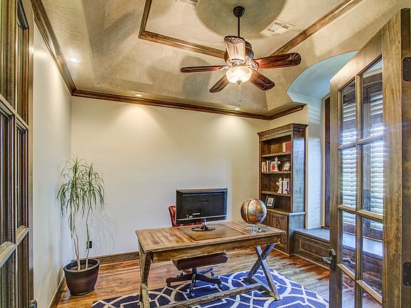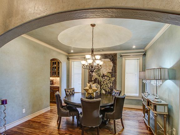Prime Pond lot in award winning Jenks schools! Enjoy the pond from your covered patio w/ fireplace for chilly evenings & a built-in grill. Large master w/fireplace and door to patio. Dine at the huge kitchen island, casual breakfast room or the lovely formal dining room. Home office & 2nd bedroom downstairs. Theater room & 2 more bedrooms upstairs, as well as a gamerm w/ wetbar & beverage fridge & covered balcony overlooking pond. Soaring ceilings, extensive hardwoods, 3-car garage & neighborhood pool.