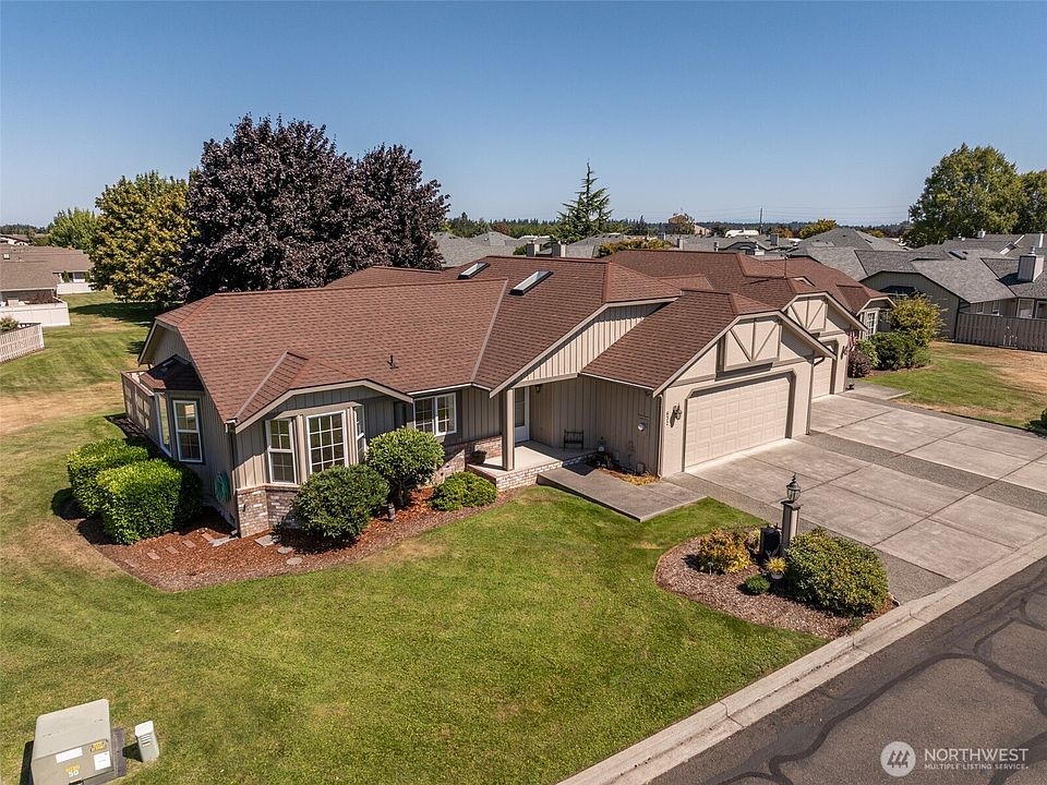 Light-filled, single-level condo in desirable Sherwood Village downtown Sequim. With 1578 SF, this 3-bed, 2-bath home offers an open-concept layout with neutral tones, bay windows, & skylights. The south-facing kitchen features maple cabinets, walk-in pantry, & connects seamlessly to the generous dining area & spacious great room with (fenced) patio access & serene, unobstructed views of a park-like greenbelt stretching north. Primary suite with ensuite bathroom & walk-in closet. 2-Car 521 SF attached garage with storage & workbench. Ductless heat pumps (2017) for efficient heating & cooling. Recent roof & exterior paint, newer water heater & range, plus freshly cleaned carpets. Short walk to Discovery Trail, YMCA, medical & town amenities.