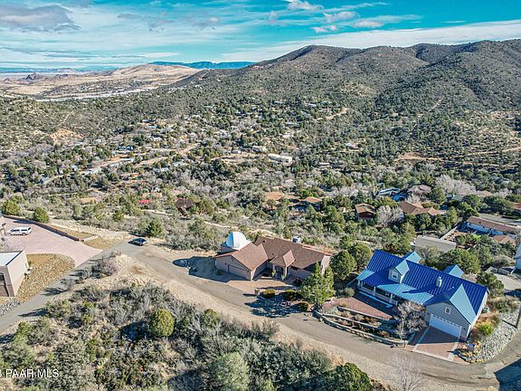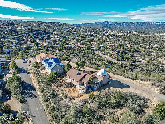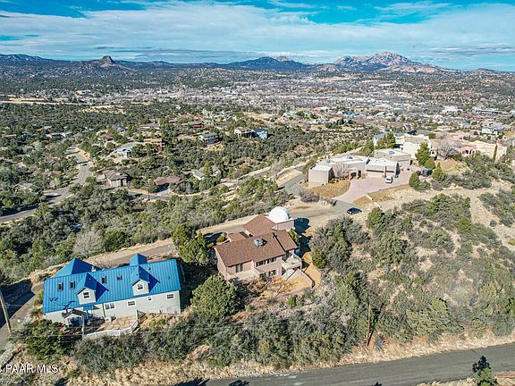 Views in every direction from this level top-of-the-hill lot! No HOA, close-to-downtown, updated, level entry. Overlooking views on front and rear taking in the SF peaks, Granite Mountain, Thumb Butte, ''P'' mntn and the Dells. New in 2020 Roof, HVAC main level zoned, maintenance free pergola. New in 2021: Interior paint, exterior paint. New in 2022: front door, exterior awnings, disposal, new carpet on stairs and in closets, newly painted kitchen cabinets. Other updates include tile downstairs in the family area, laundry utility sink, laundry folding area, under cabinet lighting, granite counter tops in the kitchen with a beautiful backsplash, re-surfaced decks. Entrance features a gated covered porch, nice interior entry leading to wood floors, gas fireplace, and custom panoramic CONT ..