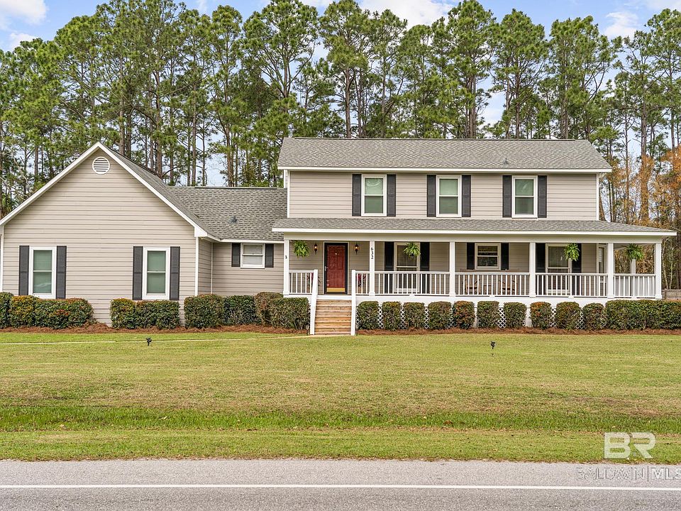 Come discover why this community is one of the most sought after in Gulf Shores, AL! Surrounded by attractions and amenities, this location provides easy access to everything you could need. Hop on your golf cart and head to dinner at one of the popular local restaurants, or make a stop by the Kids Park, Skateboard Park, or the David L. Bodenhamer Recreation Center. Enjoy a round of golf at the Gulf Shores Golf Club or visit the public library and Gulf Shores Museum, all of which are just right up the street. There is also a boat launch nearby, as well as grocery stores, and the white sand beaches. From the moment you pull into the driveway of this property, you feel right at home. Its spacious front porch is perfect for relaxing in your rocking chairs and taking in the unbeatable gulf coast sunsets. The welcoming feeling continues as you make your way inside. The living room showcases high ceilings that extend to the upstairs, an electric fireplace with a brick surround and built ins, a custom light fixture that enhances the room, and convenient access to the screened in back porch. The kitchen is equipped with custom cherry wood cabinets, granite countertops, stainless appliances, and a brand-new sink. The main level master suite features an oversized master bath with a custom tiled shower, freestanding soaking tub, a walk-in closet, and a 2nd closet for additional storage. It also has a private office ideal for your working from home needs. Upstairs you will find the other 3 bedrooms, as well as floored attic space for extra storage. The double garage offers ample room for your vehicles and includes an additional storage room. In 2021, the owners installed a new roof, engineered hardwood flooring, painted the interior, installed all new light fixtures, renovated all bathrooms, and updated the staircase and balcony railing with iron spindles. There is also an outbuilding with power, a plumbing manifold, and an irrigation system with its own well.