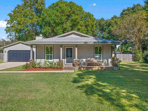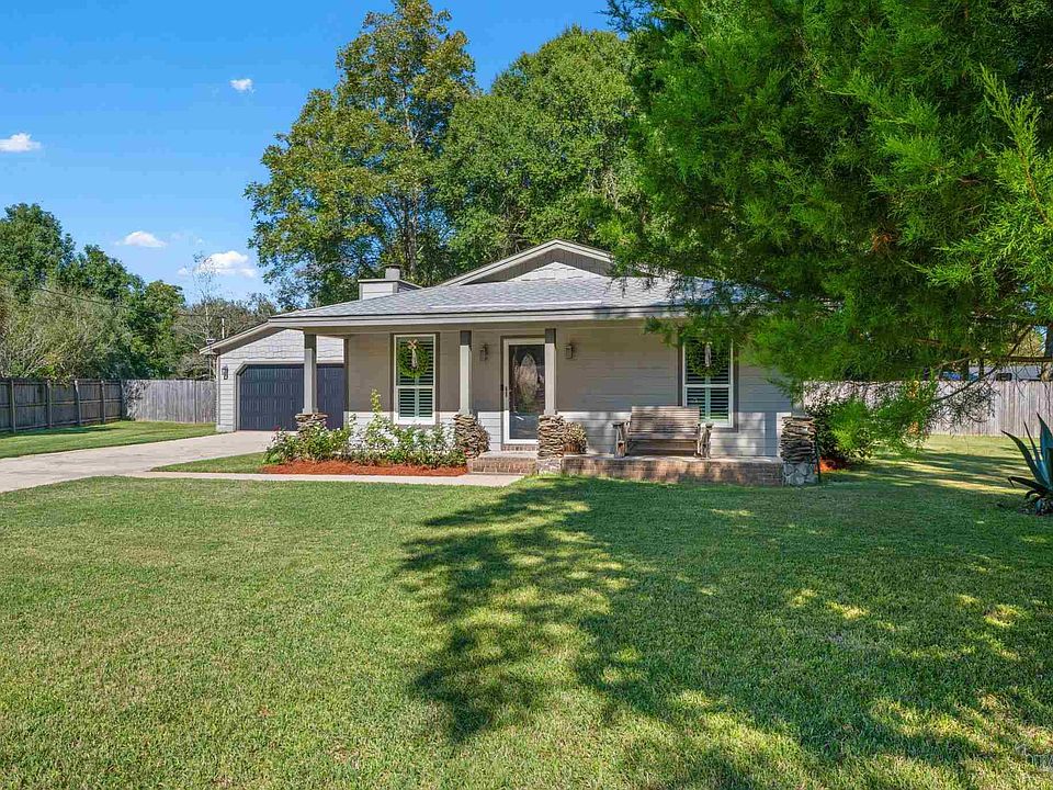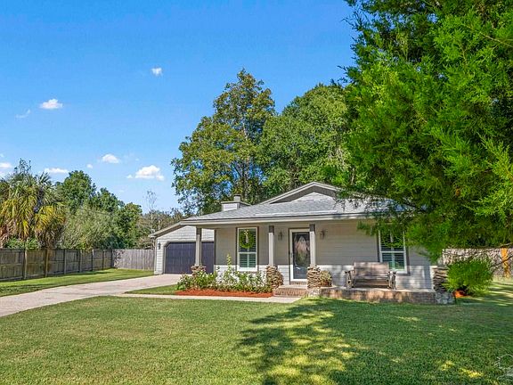 Nestled in West Pensacola, this Bellview ranch-style build could be your new home. Less than 10 minutes from the Pensacola Fair Grounds and Five Flags Speedway, this home is close to endless shops and restaurants. This home is less than 20 minutes from Cordova Mall, Pensacola's three hospitals, Palafox St in Downtown Pensacola, the Pensacola International Airport, and more. Some of the home's features are the spacious and private backyard, the wood burning fireplace with a vintage mantel, and the lot location being nestled at the end of a quiet cul de sac. Recent upgrades include all tile flooring, carpet, paint, granite countertops, kitchen appliances, cabinetry, bathrooms, back patio addition, hardy-board siding on front of home, weather shield windows, plantation shutters, exterior doors, garage door, air conditioning unit, and mailbox.