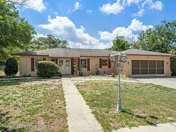Welcome to Cranbrook Court. This single family BLOCK home located in Spring Hill Florida is a RARE opportunity for affordable waterfront living. Before you arrive at your destination, you will notice the close proximity the home is to life's necessities, less than 2 miles from groceries stores, restaurants, and shopping. Short distance to Pioneer Park, Spring Hill's ONE OF A KIND skate park and a 11 minute drive to the world famous Weeki Wachee Springs. As you make your entry through the french doors, your eyes will immediately be drawn to the water view, Hunters Lake, landscaped with natural lily pads, calm water and wildlife. The first room you enter into is the spacious living area, filled with natural light beaming in from the wall to wall sliding glass doors. This ideal split floor plan separates the master bedroom with ensuite from the spare bedrooms and guest bathroom. The eat in kitchen includes a walk in pantry. There is an attached large 2 car garage with a functional garage door opener and screen sliders. This home boasts FLORIDA LIVING at its finest. In ground pool, screened enclosure with water views. Hunters Lake is a naturally-occurring body of water, one of the largest in Hernando County, an area of over 300 acres. Known for its picturesque views, bird watching and bass fishing. Bring your kayaks and water toys and live where you vacation! OTHER KEY INFORMATION: A/C 2020, water heater 2018. Owner has a recent 4-point inspection to provide. Washer and dryer are included in the sale. There are no HOA or CDD fees, low Hernando County taxes The location of this home is truly ideal, just a short drive to some of Florida's most beautiful beaches, making it the perfect retreat for those seeking coastal lifestyle. ALL INFORMATION PROVIDED IS DEEMED RELIABLE, BUT IS NOT GUARANTEED AND SHOULD BE INDEPENDENTLY VERIFIED.