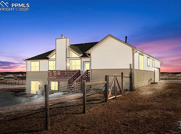 Equestrian estate on 35 acres with phenomenal mountain views in sought after northern Black Forest! 48x36 custom drive through barn w/ 12 foot center aisle, separate 200 amp electric meter, security cameras, 12x12 heated tack room w/ washer/dryer connections, wash area w/ hot/cold water, marine varnished tongue and grove, 4 quality stalls featuring dutch doors, rubber mats and Nelson waterers. The barn has a 24x12 hay storage area. 100x200 outdoor arena w/ sand footing. Five loafing sheds (One-9x30, three-9x12, one-10x30). Five fenced pastures. High quality 40x50 outbuilding w/ 12 ft enclosed overhang for equipment, triple trusses, 13 ft walls, electric, 12x10 overhead door and 3 ft service door. The building is perfect for additional garage space, could be turned into additional stalls, a workshop.... the possibilities are endless! Main level living rancher in great condition w/ vaulted ceilings, three main level bedrooms, 2 laundry rooms and a walk-out basement for future expansion or storage. Upon entering the home you are greeted by the spacious great room w/ vaulted ceilings, large windows for lots of natural light and a wood burning fireplace. Main level master suite w/ private walk-out to the back deck, five piece master bath and walk-in closet. Beautiful kitchen w/ slab granite counters, stainless appliances, a double oven, dining nook and charming glass front upper cabinets. Formal dining room open to great room. Five separate frost free water faucets throughout the property. High quality and upgraded fencing and cross fencing. Chicken coop. 300x100 fenced yard area. No covenants or HOA. Quiet end of cul-de-sac location surrounded by 35+ acre properties. This property is a rare find on large acreage! Completely move-in ready for all of you and all of your animals!