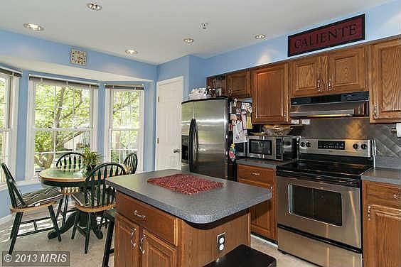 Very desirable townhouse in this popular neighborhood with exceptional location for commuters to Baltimore or Washington. Amenities include hardwood floors in foyer and dining room, front kitchen with center island and stainless steel appliances. Lovely custom built-in bookcases & french doors to deck in sunken living room. Upper level covered in new carpeting. Spacious lower level recreation room