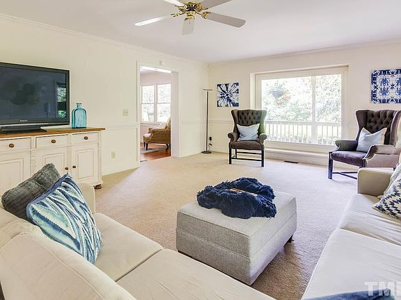 Country Living in the City! Gorgeous, custom built home in the heart of North Raleigh. Updated kitchen with granite counter tops, spacious flexible living areas. 4 Bedrooms with 1st floor in-law suite, huge master suite w/custom closet. Full width rocking chair porch. Huge landscaped lot (.77 acres) with large deck and hard-scaped patio areas. Detached 2 car garage with theater room on the second floor. Beautifully maintained and continuously updated. Tons of storage. Lovely and unique and NO HOA.