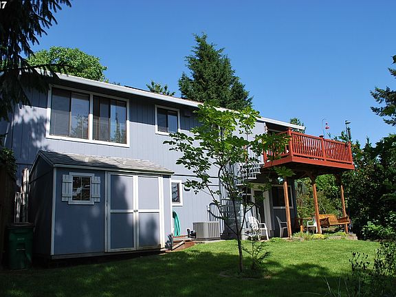 Impeccable updated light and bright daylight basement located in a very private quiet location with a sweeping view of the west hills. New kitchen, maple cabinets, stainless steel appliances. Living room w/ new hardwood floors, vaulted ceilings, gas fp, and view deck w/ access to lower yard. New master bath, custom marble tile shower. New roof, high efficiency furnace w/central air. Beautiful yard w/ fruit trees, berries, water feature