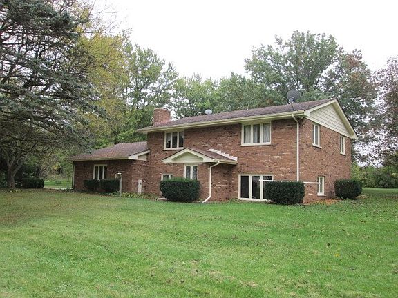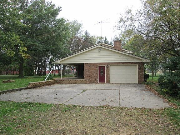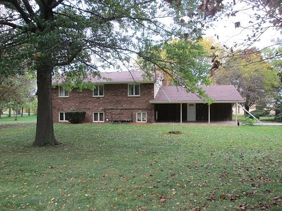 Large 4 bedroom, 2 bath, brick home on 3 acres! Fresh paint on exterior trim. 2 large outbuilding with multiple car stalls. all bedrooms have double or triple closets. Newer roofs on all building. Wooded lot. Fireplace in dining room. Kitchen has all appliances and an island. 1 car attached and 4+car detached garages. Country setting at its best!! Lawn tractor with mowing deck and hydraulic plow included (as is).