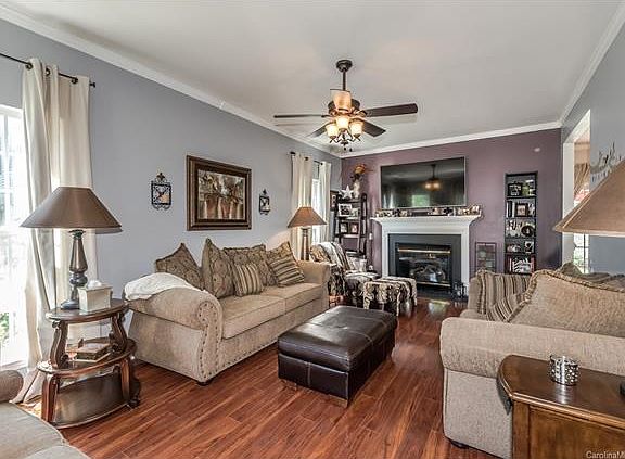 Well maintained home, great curb appeal on cul de sac lot. Features include fabulous kitchen w/granite, stainless appliances, an island & pendant lighting. Beautiful laminate flooring downstairs, gas fireplace, crown molding, ceiling fans throughout, trey ceiling in master bedroom & Google fiber available. Flat, gorgeous fenced backyard/patio area w/hammock and firepit - perfect for entertaining. Stoney Creek is desirable community within minutes of I485, restaurants & shopping