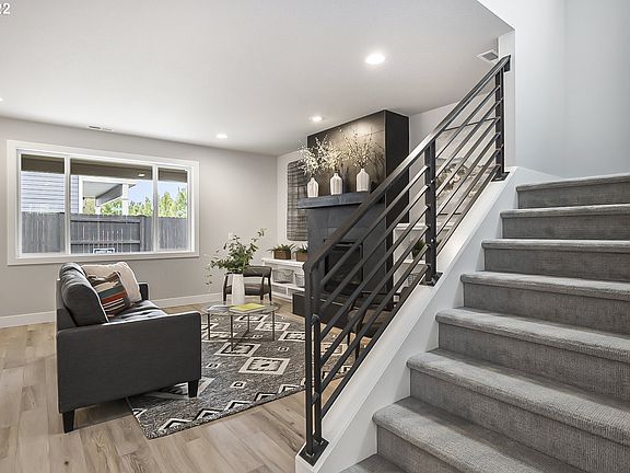 This home by Stone Bridge Homes NW features a main-level den/office. The kitchen/great room comes with hardwood flooring, quartz countertops, and a gas fireplace. On the second level, you will find a primary suite with a tile shower, double walk-in closets, and a separate linen closet. Front/back yard landscape, fencing, air conditioning, and 2-10 warranty. Earth Advantage certified. Stone Bridge Homes NW is offering a $15,000 credit on this home for closing costs, window blinds, or appliances.