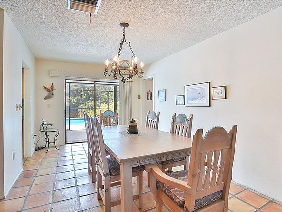 Welcome to this secret treasure in the popular community of Village Green. As you walk through the front door, you'll immediately be delighted to see this lovely pool home has direct frontage on a natural lake with no neighbors across the lake which makes for stunning, private views. Enjoy this beautiful paradise watching the beautiful aquatic birds and semi-aquatic otters at play. The sparkling, caged pool has a Pentair filtration system with multiple speeds, was refinished two years ago with Fibretech , and has a newer pool cage. The house has recently been painted and is situated on a large, lush lot with lawn irrigation from a deep well. The interior of the home includes three bedrooms, carefully spaced apart to offer privacy, and two baths. The kitchen includes newer cabinets with pull-out, soft close drawers plus quartz counters. Just off the kitchen is a lovely living space currently being used as a den, however, this space could have multiple uses depending on your specific needs. The kitchen includes a pass-through window to the back lanai pool area. Flooring in the main living areas is Mexican Saltillo tile. The master bedroom has bamboo flooring and the other two bedrooms are carpeted. This home is perfectly situated in Bradenton, only about a 6 mile drive to stunning Anna Maria Island beaches. The location is conveniently located to shopping, restaurants, medical facilities, IMG Academy, and Robinson Preserve, a nature preserve with hiking & biking trails, picnic areas, kayak launch & observation platforms. Being sold 'as is' with right to inspect.